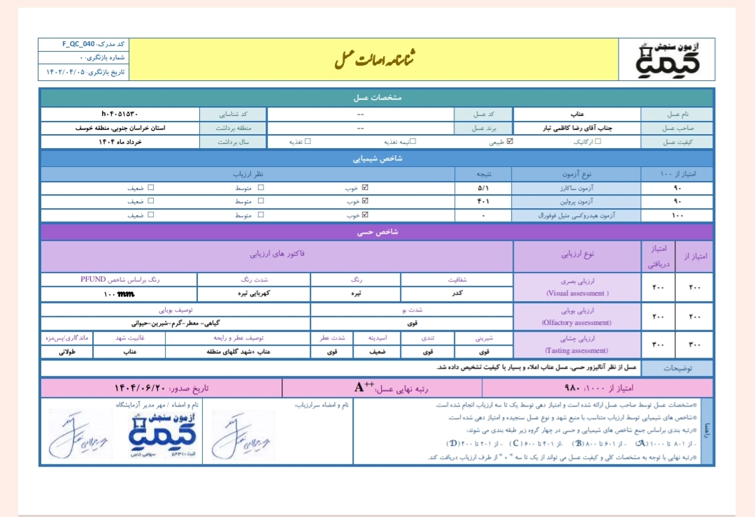 رنگ زرد طلایی و تیره بسته به نوع گل: یک کیلو گرم نیم کیلو گرم